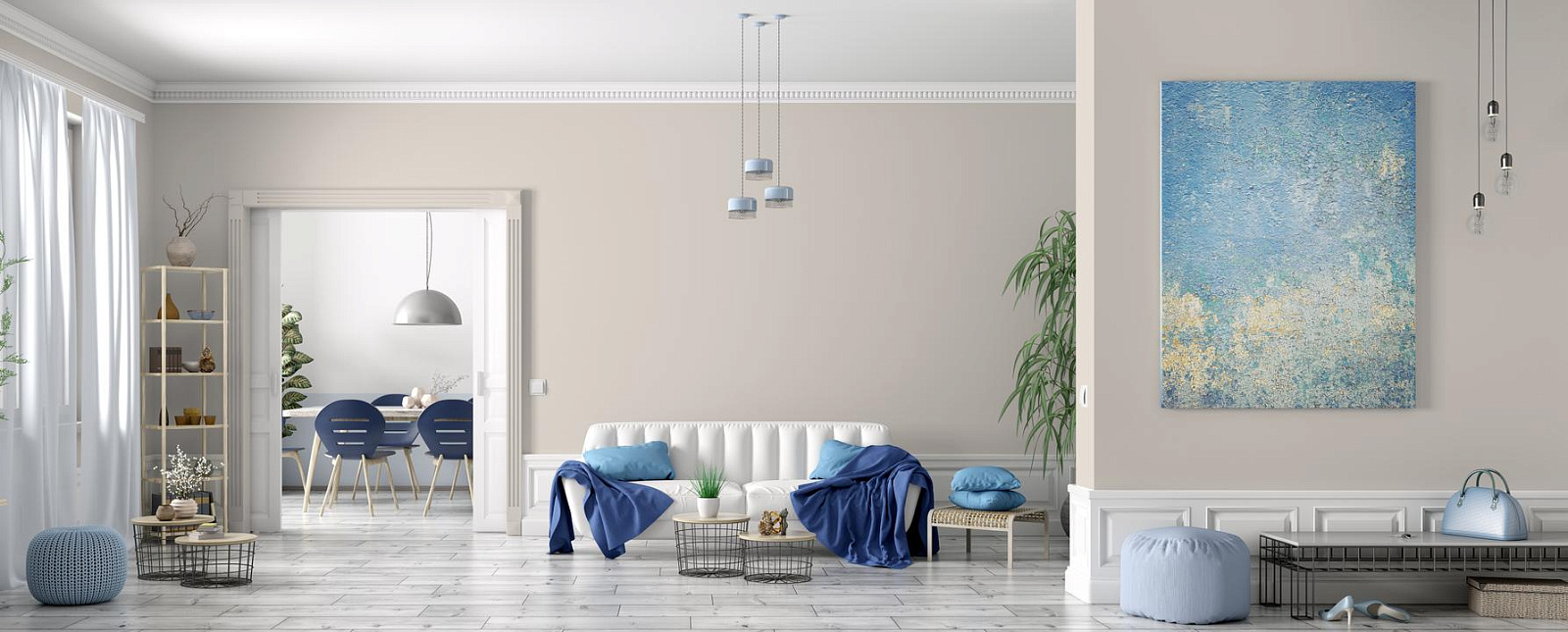 - Неземная легкость: Визуально растворяет границы, делая потолок выше, а стены — невесомыми.