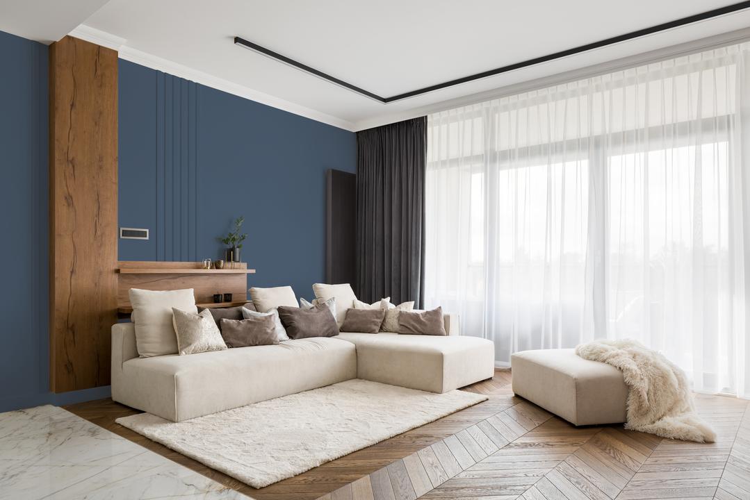 С чем сочетать? Сочетайте с белым, песочным, серебристым, тёплым серым. Материалы: светлое дерево, матовый металл, бархат, стекло. Идеален для спален, домашних кинотеатров, кабинетов в стилях: ар-деко, морская готика, современная классика.