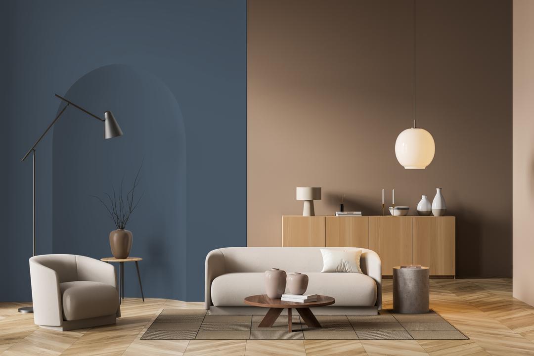 - Визуальное исчезновение: При использовании на стенах цвет «растворяет» границы помещения, создавая иллюзию бесконечного пространства.